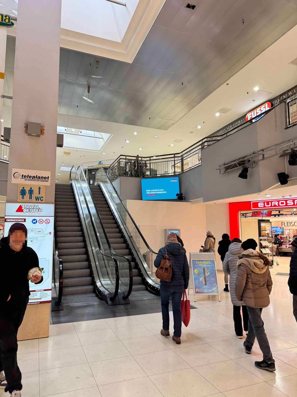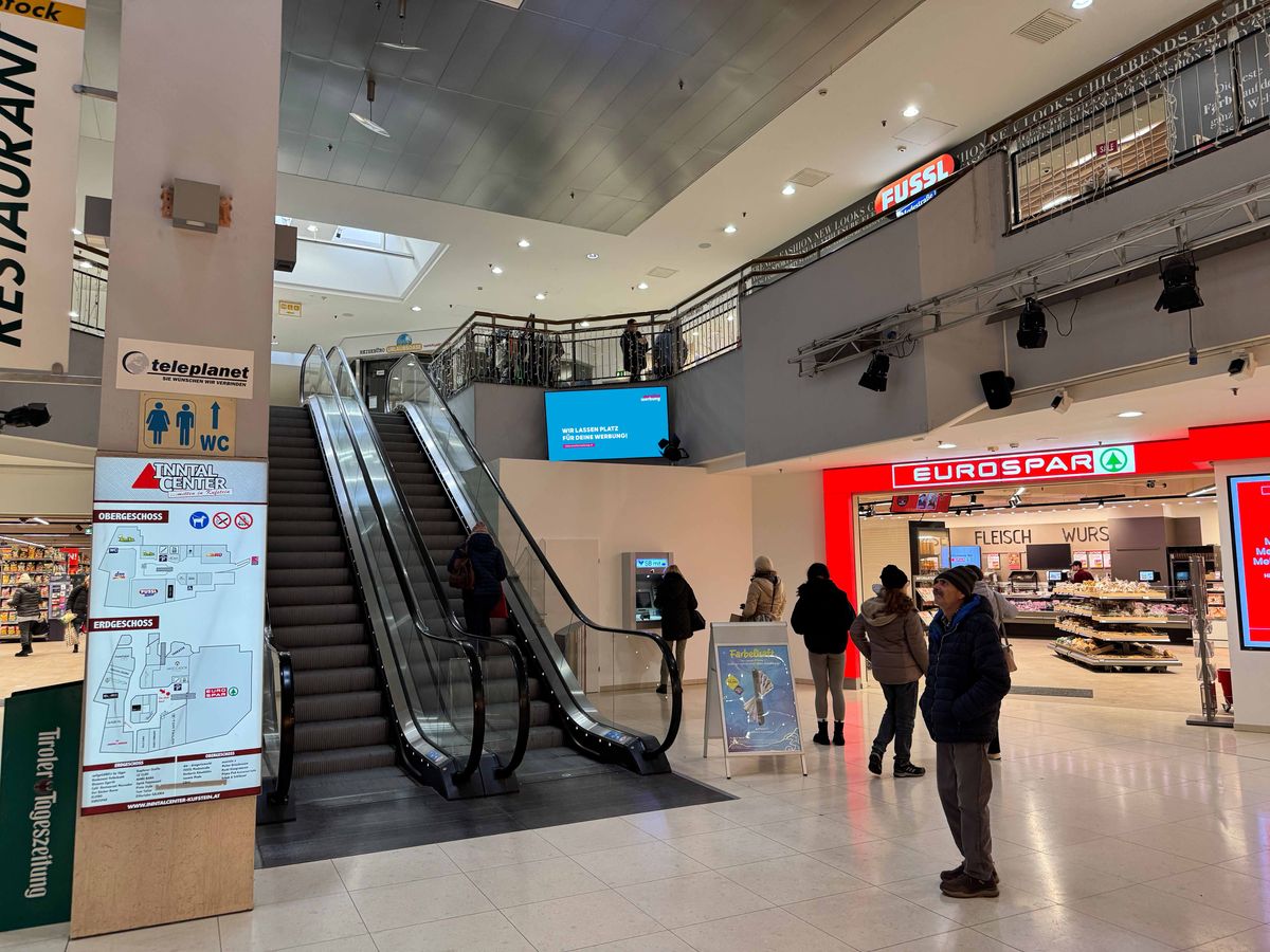 Screen befindet sich im Einkaufszentrum direkt bei der Rolltreppe.